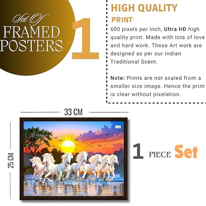 7 Horses Painting with Frame for Vastu ? Rising Sun Wall Decor Painting | 7 Horses Wall Decor Photo Frame 10 x 13 inch | Modern Art Wall Painting for Living Room, Bedroom & Home Decoration