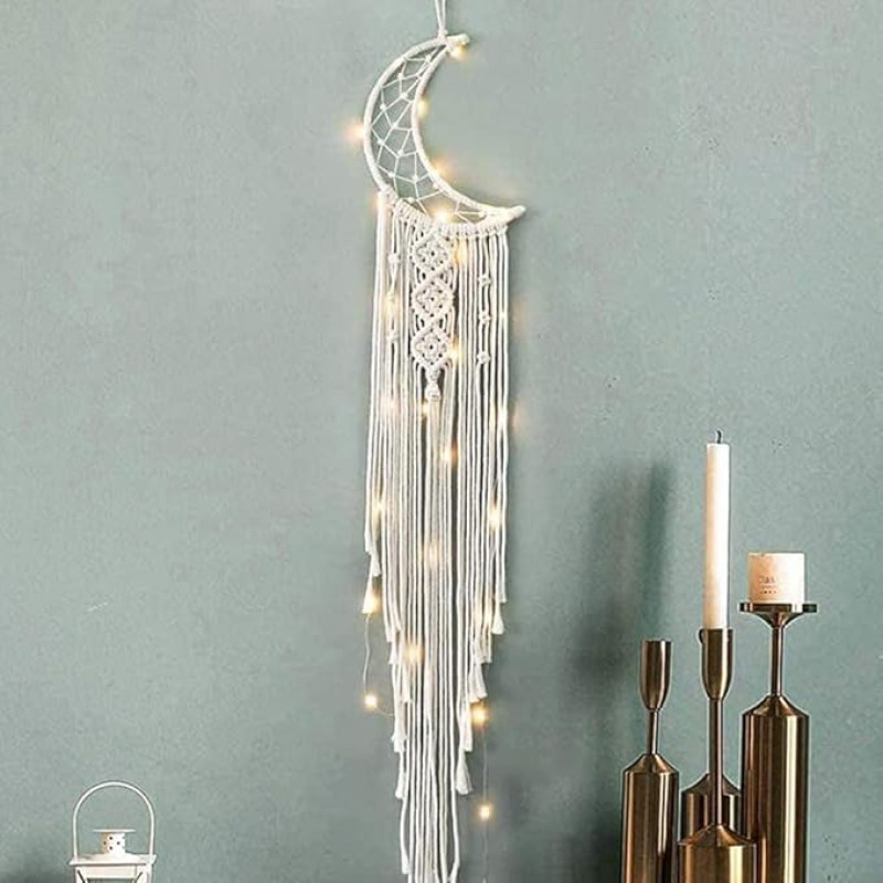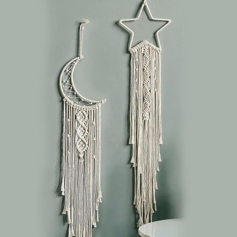 ACN Kohinoor Cotton|Handmade Macrame Star Moon Dream Catcher|ACNDC 11|Boho Wall Hanging Decor,Best Gift for Girls,Friends,Marriege Party,Home,Bedroom,Living Room Decoration 30" Lx10" W,Off-White