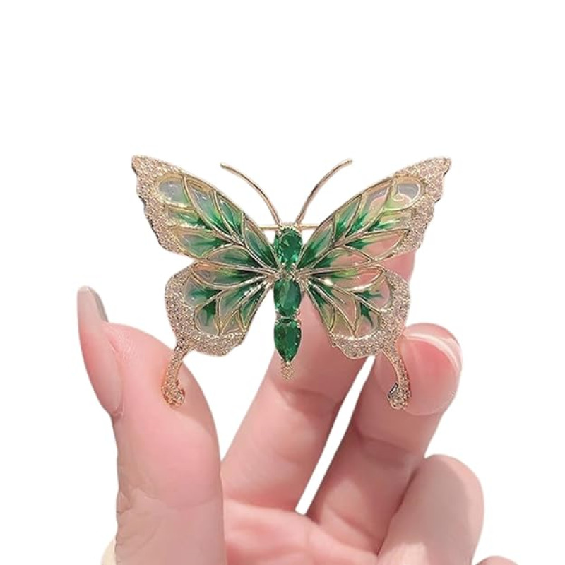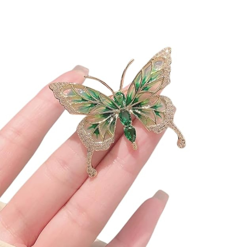 Ahamo Enamel Butterfly Brooches for Women - Elegant Crystal Accent Fashion Pin for Saree, Dress, Jacket, Kurti (Gold/Silver)
