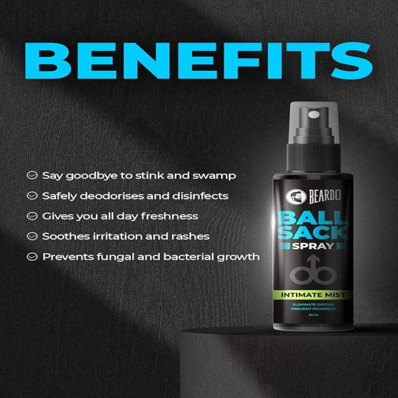Beardo Ball Sack Spray For Men, 50ml | Intimate Care Spray for Fresh, Clean and Dry Balls | Intimate Hygiene Body Spray for Men; Prevents Odor, itch | Strictly for men Gift for men