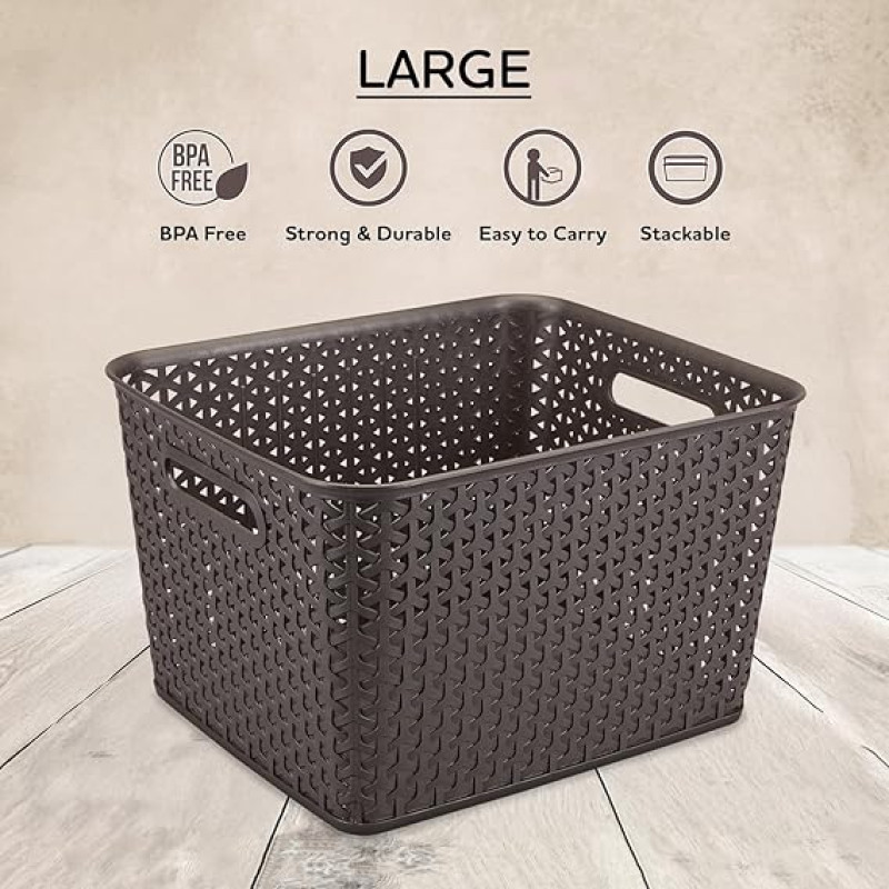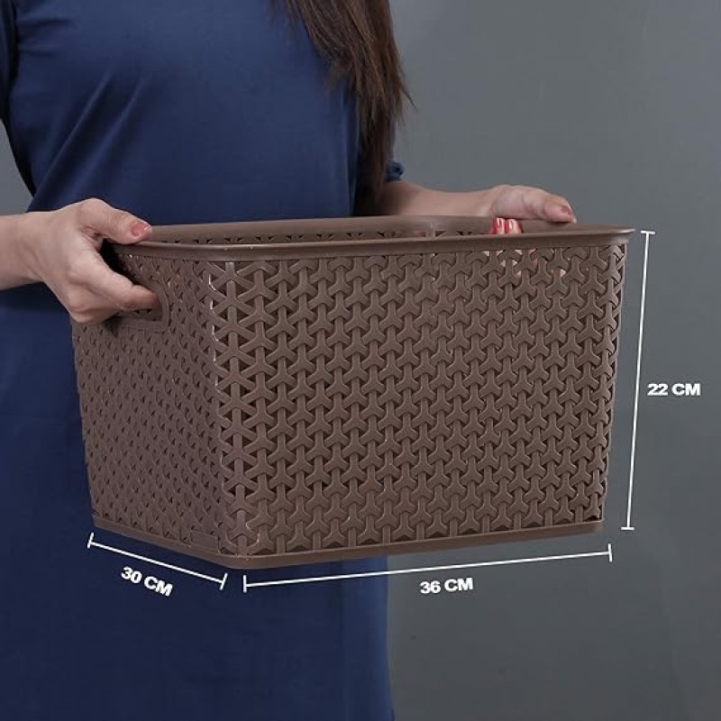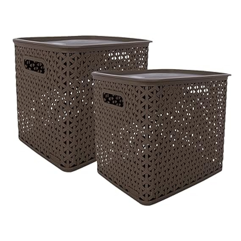 BEL CASA Royal Basket With lids-Large (Pack of 2 with 2 lids) Multipurpose Plastic Storage Rectangular Shape Baskets For Wardrobe/Home/Kitchen-Dark Brown