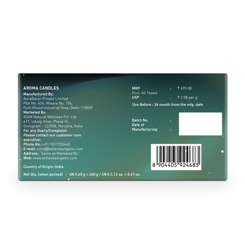 Bella Vita Organic Soy Wax Aroma Candles Set Of 4 Scented Aromatic Fragrance Vanilla, Cinnamon, Lavender & Rose For Gifting Home, 60 Gms Each,Up To 15 Hours Burn Time