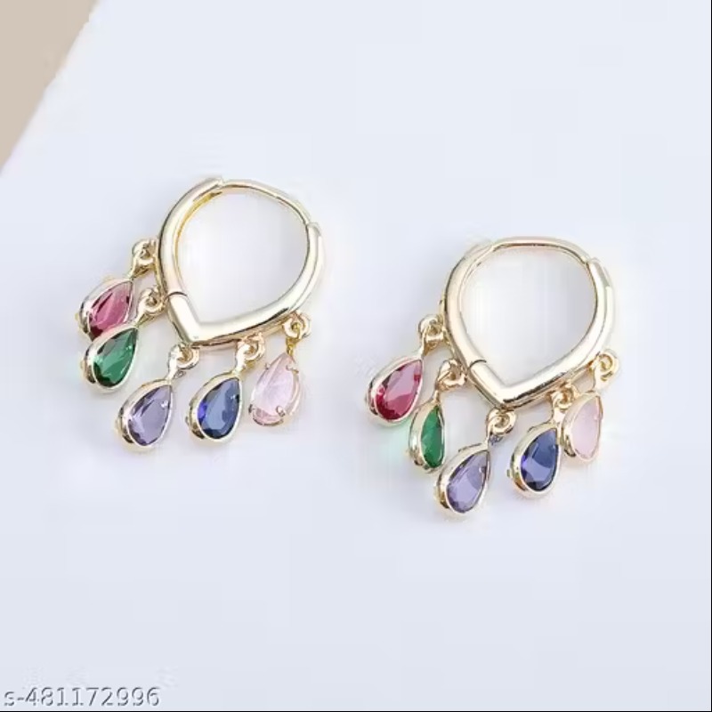 Name : Caria Jewellery Gold-Tone huggie hoops with multicolor teardrop charms ? ear rings for women stylish | ear rings for women | earring for women. Base Metal : Brass Plating : Gold Plated Sizing : Non-Adjustable Stone Type : Artificial Stones Type : Hoop Earrings Net Quantity (N) : 1 |