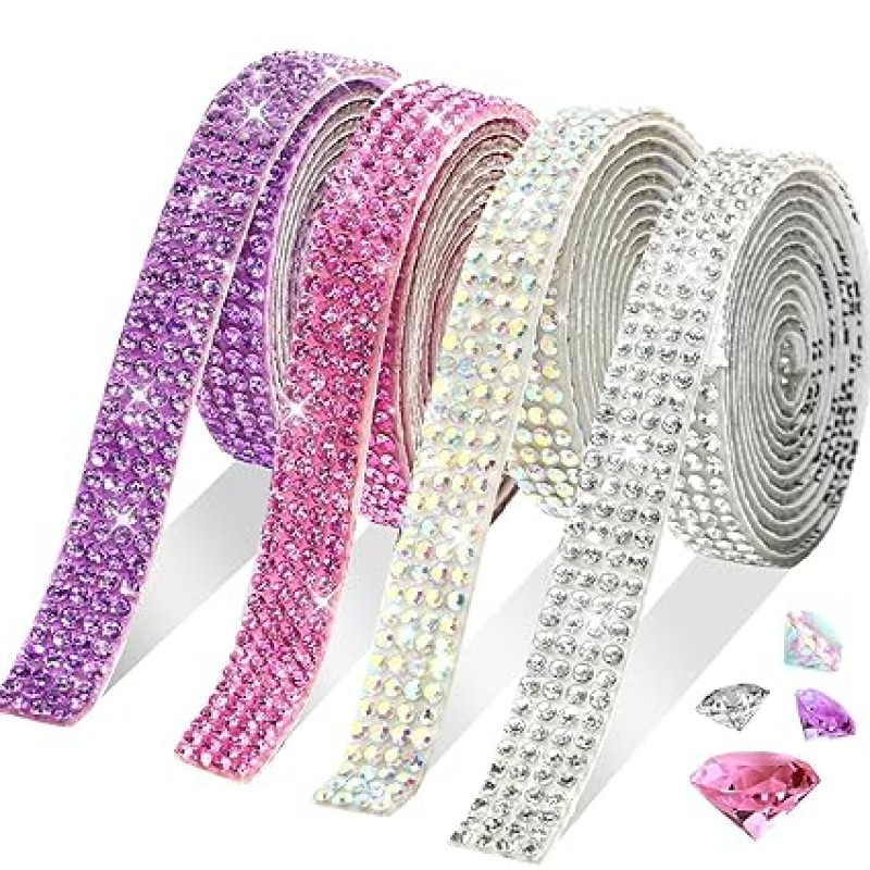 CoolShef 4 Rolls Self-Adhesive Rhinestone Ribbon Tape? Glitter Resin Diamond Strips, Bling Rhinestone Stickers for DIY Art Crafts, Fabric, Wedding, Party and Home Decoration