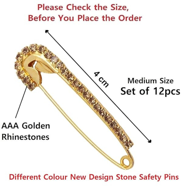 Pack Of 12 Pcs Multicolour Safety Saree Pin Made With Finest Quality Stone Sadi Sari Saree Brooch Pin These sari pins for women latest design are very useful for Dupatta as well as heavy or light sarees Pleating ,which would draw appreciation, as well as compliments. These fancy sadi pins for ladies are easy to use on saree pallu which are made of High quality heavy metal pins for holding heavy sarees. These high quality brooch saree pins combo pack ensures quality and comfort for everyday use and Looks stunnigly stylish, Clip on mechanism, so that it wont spoil the dresses or saree with a big hole. These Safety Sadi Saree Pin are perfect for any occasion & Festivals. Ideal Gift for Wife,Girls,Women,Girlfriend etc. Material type Metal Style Sweater Shawl Hijab Brooch pin Class type Safety pin fancy |