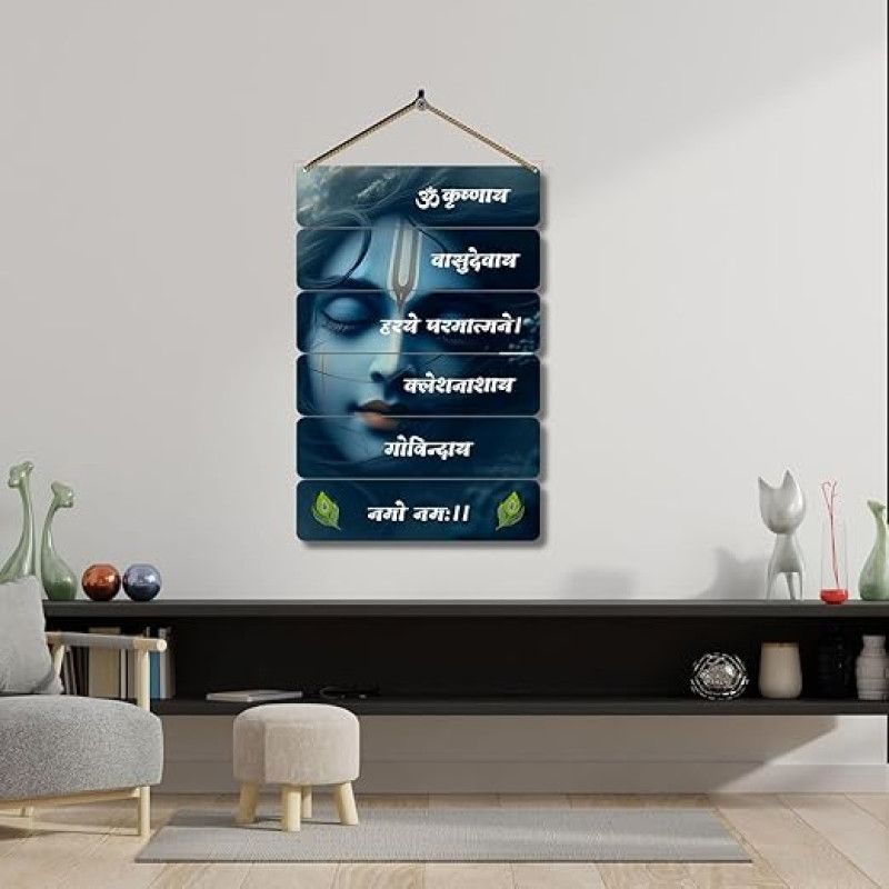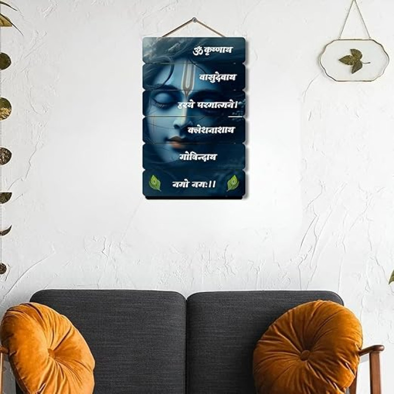 DAKSHESTRY ARTWORKS Premium KANHA Krishna Spiritual Decoration MDF Wooden Wall Hanging Decor Hanging Item for Living Room & Bedroom