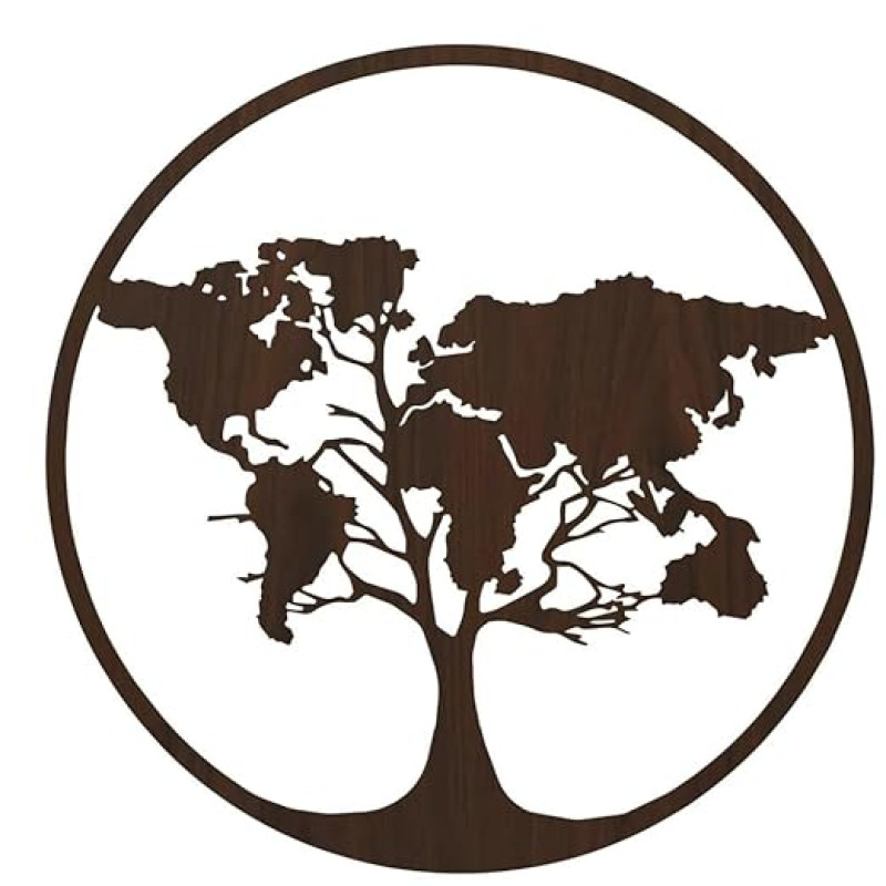 DarkIndia Walnut Tree Shape World Map Decorative Wall Backlit Art & Night Light | Modern Wall Light for Bedroom, Living Room, Office Decor | 18 x 18 Inches