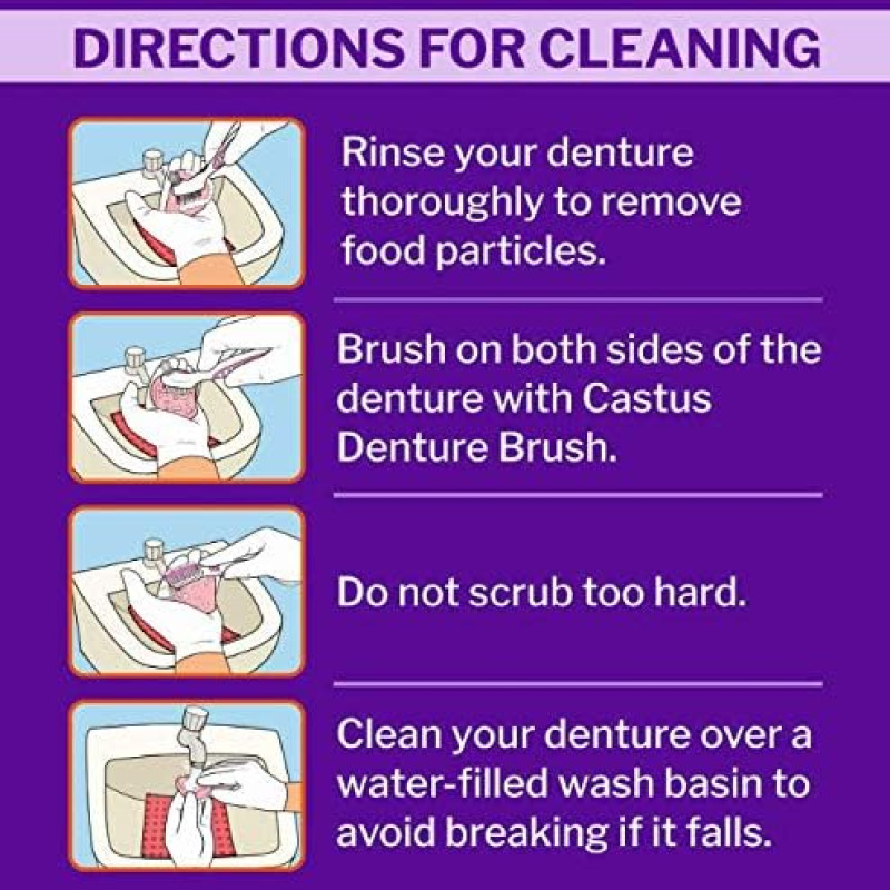 Densive Antimicrobial Denture Cleanser Tablets (30 count Pack of 3) with Color-Changing Technology for Effective Cleaning and CASTUS Manual Denture Brush (pack of 1) (combo pack)