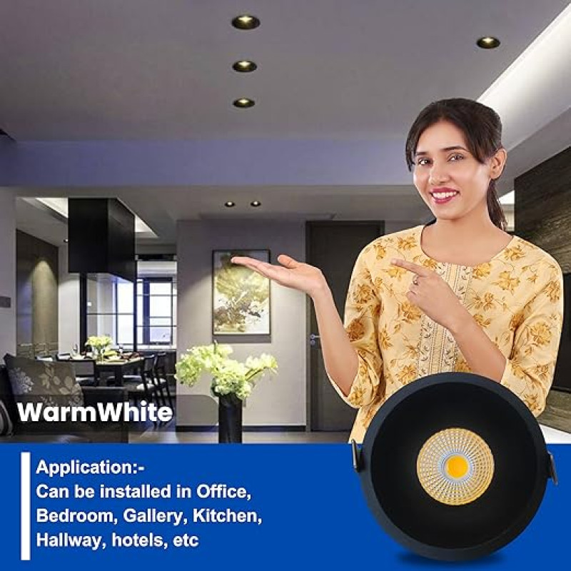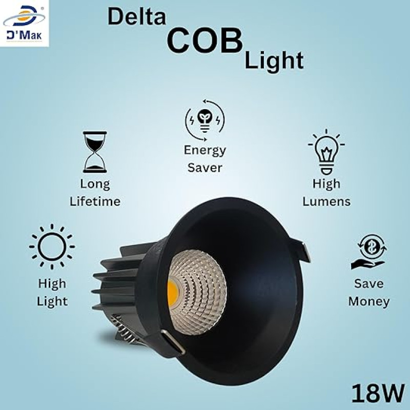 D'Mak 18W Black Body LED Deep COB Light | Recessed LED Ceiling Light for Indoor Lighting (Warm White, Pack of 2)