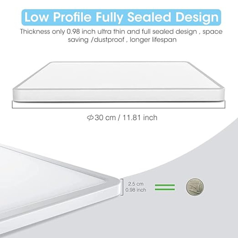 ELEPHANTBOAT ABS 24W LED Ceiling Light for Room Modern Minimalist Square 30 * 30cm Roof Light for Home Ceiling White Light Ceiling Light Flush Mounted Light (6500K)