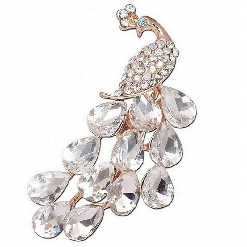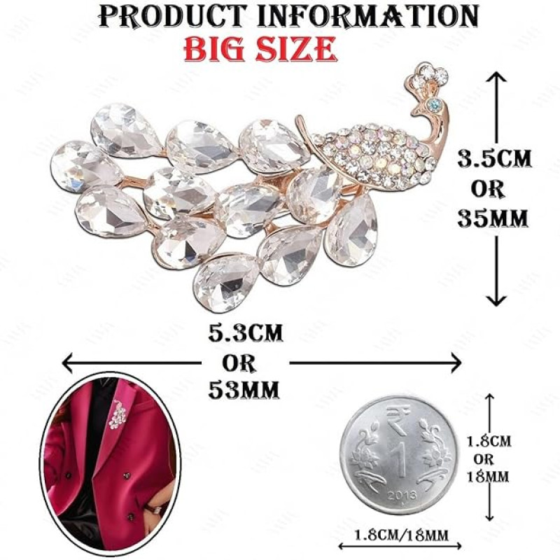 Fashions Crystal Rhinestone Saree Brooch Pins Coat Dress Gown Shawl Wedding Bridal Peacock Brooch for Women Girls