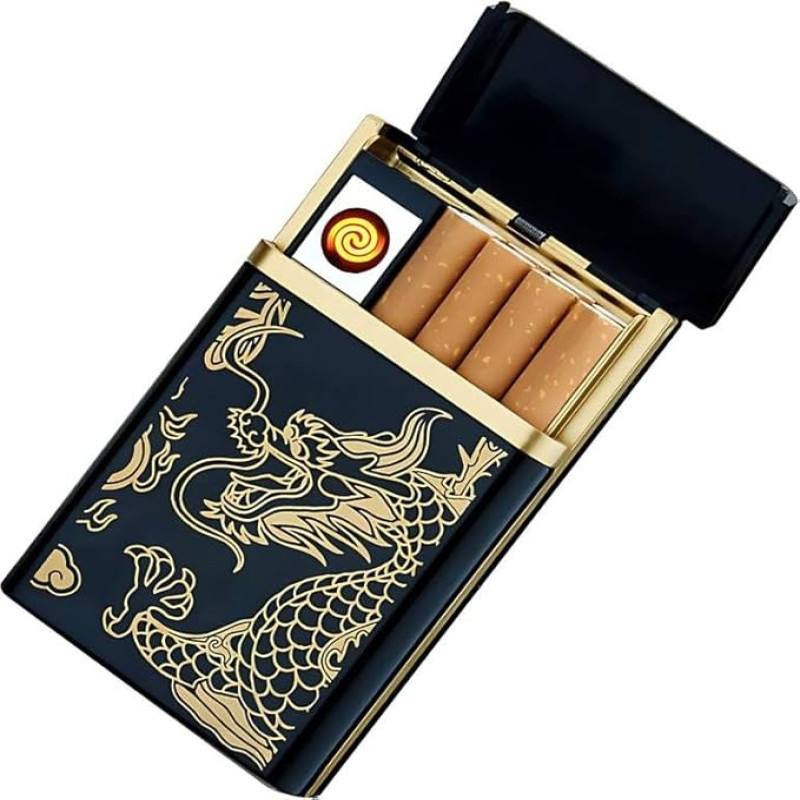 Flamemate Golden Dragon Case USB Rechargeable Electronic Windproof Cigarette Lighter