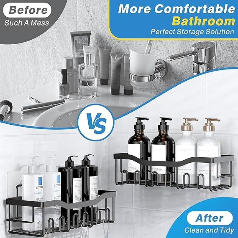 FLYNEX 5 in 1 Self Adhesive Bathroom Shelf Rack & Wall Shelves | Bathroom Organiser Without Drill with Self-Adhesive Magic Stickers | Bathroom Accessories Set with Soap Dish & Toothbrush Holder