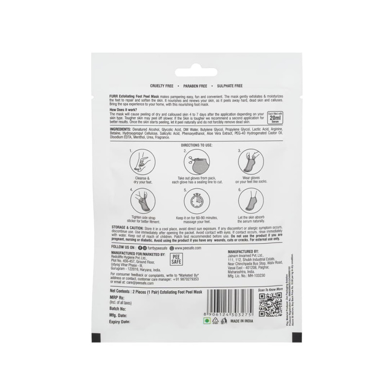Furr Glycolic Acid & Salicylic Acid Peeling & Exfoliating Foot Mask | Reduces Dry Skin & Hard Calluses| Exfoliates,Moisturizes & Hydrates Feet | Nourishing Foot Mask | Fits Like Socks | Unisex