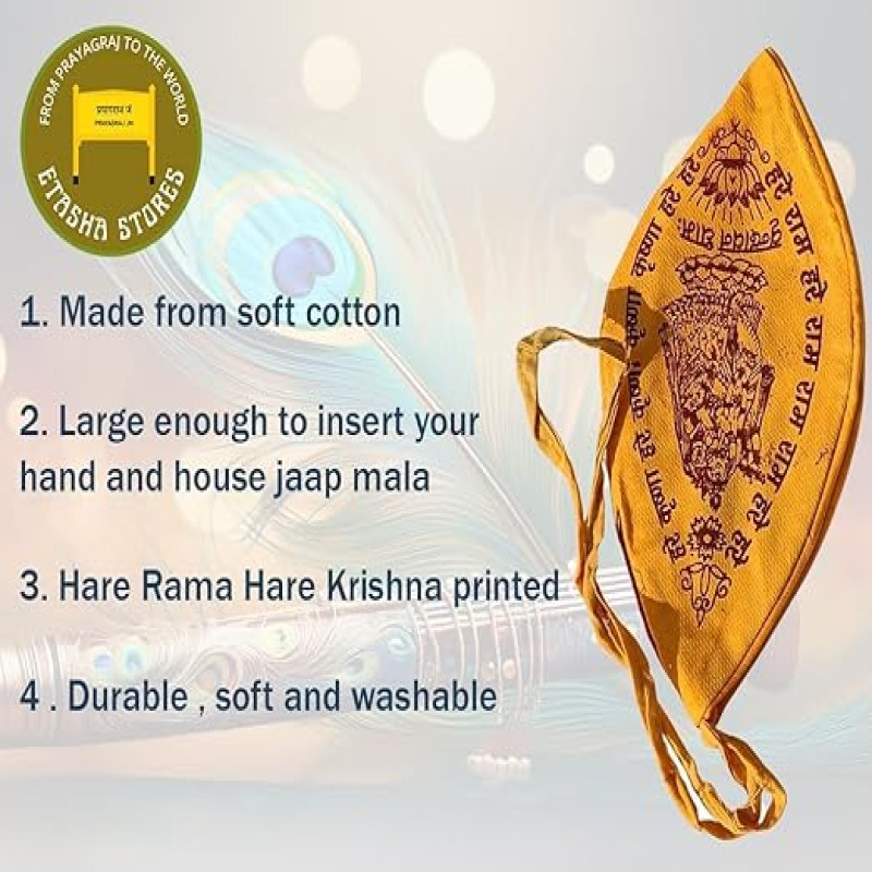 Gaumukhi Jaap Bag & 108 Beads Tulsi Mala | Jaap Mala With Jaap Bag | For Prayer And Chanting | Gomukhi Jap Mala | Pack Of 2 Items, Yellow