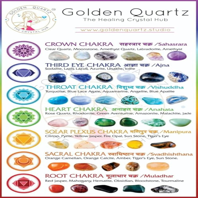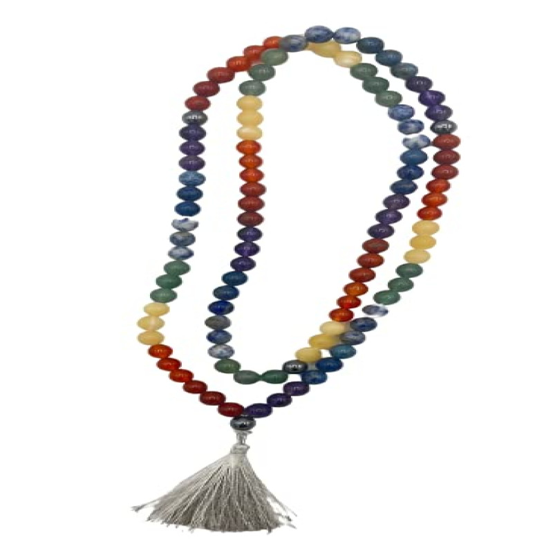 GOLDEN QUARTZ - THE CRYSTAL HUB - 7 Chakra Mala Certified Natural Crystal Gemstone Prayer Bead 8mm 108 Beads Jap Mala for Meditation, Pooja, Chanting, Wearing with Certificate (8mm, 7 Chakra)