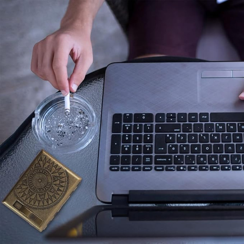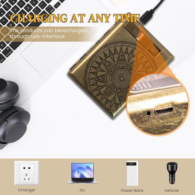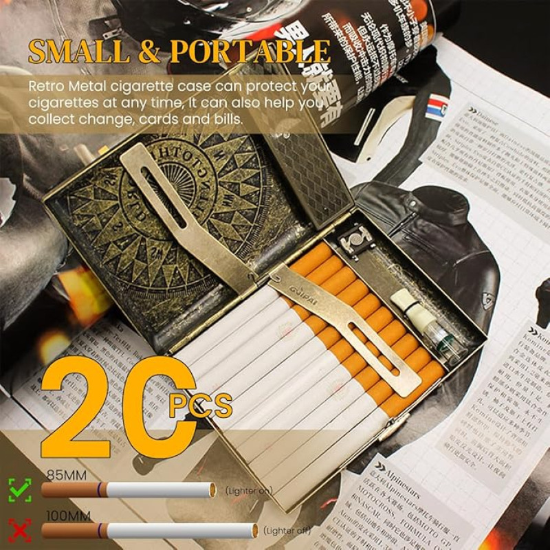 GUSTAVE? Retro Metal Cigarette Case for Men - USB Rechargeable Flameless Coil Lighter, Can fit upto 20 pcs Regular Cigarettes(85mm), Coil Lighter Gift for Men