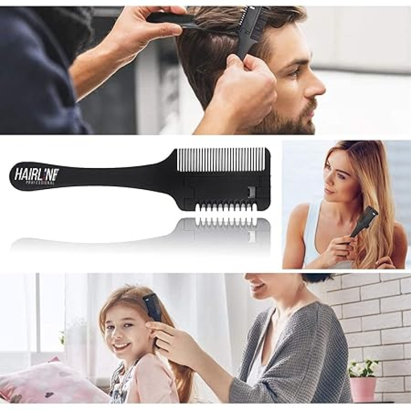 Hair Line Professional Unisex Multi-Functional Single Blade Razor Comb for Hair Thining/Trimming, Hairdressing Cutting Tool For Salon n Home Use_Black