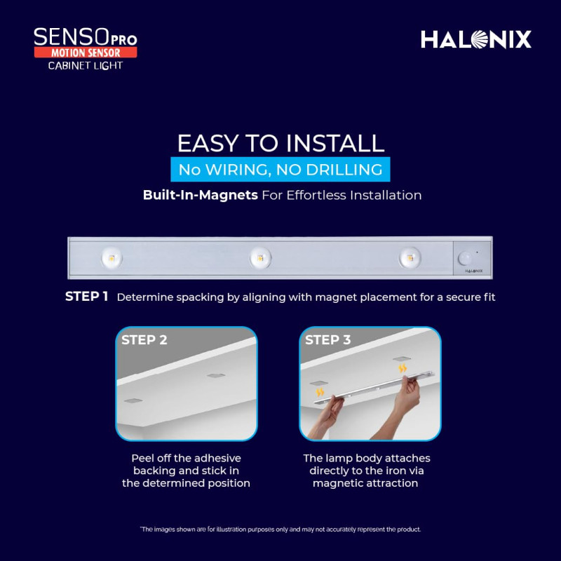 Halonix 3 Led Dimmable Rechargeable Motion Sensor Cabinet Light | USB-C Charging | Motion Sensor Light | No Wiring No Drilling | 120? Motion Detection | Dimmable Warm Yellow Cabinet Light ? Pack of 10