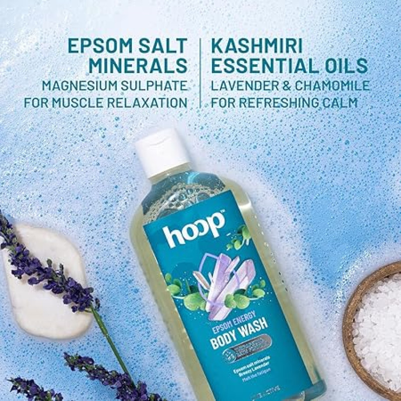 hoop Epsom Body Wash | Epsom Salt Body Wash For Shower, Hand & Foot Soak, Workout Recovery, Bath Salt, Relaxation, Skin, Feet, Lavender | 300 ml