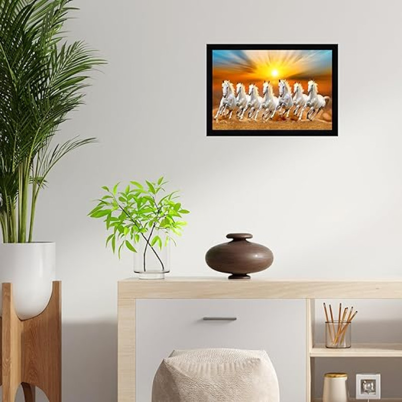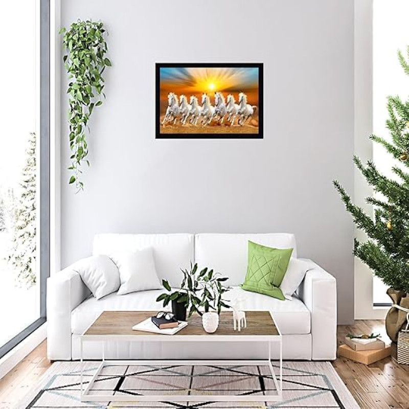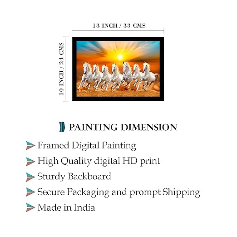 Indianara Vastu Runing Seven Horses Painting With Frame 13 Inches X 10 Inches (Style 1)