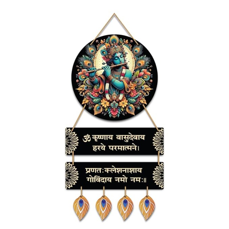 Kaameri Bazaar Wood Hare Krishna Vasudevaya Haraye Paramatmane Krishna Mantra Wall Hanging for Living Room|Home Decoration Item|Wall Art,63 Cm