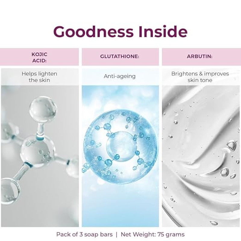 Kozicare Kojic Acid Soap & Glutathione | Whitening | Body Tan Removal | Bath for Men & Women | Remove Dark Spots & Hyperpigmentation | For Glowing Skin - Pack of 3