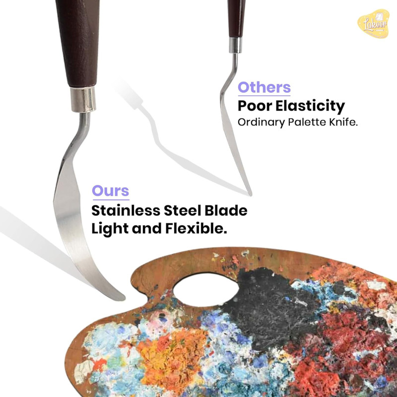 Lakeer Palette Knife Set - 10 Pcs Stainless Steel with Wooden Handle, Ideal for Acrylic, Oil Painting, and Mixed Media Art