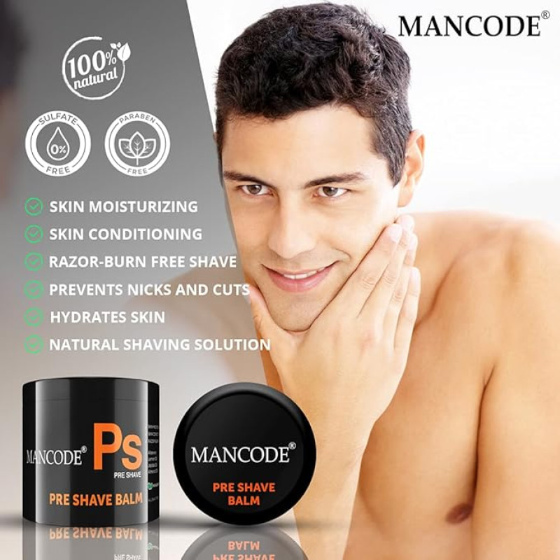 Mancode Pre-Shave Balm for Men | 100gm | Balm Softens your Beard | Provides Razor Glide for a Smooth Zesty Shave | Apply to Prevent Shaving Irritation and Razor Burns | Cut & Irritation Free Shave.