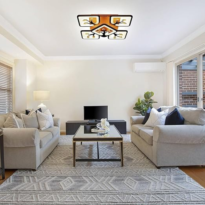 MNKD COLLECTION Metal Lighting Colours 3 In1 Center Circle Light Ceiling Chandelier Square Lamp Light (With Remote Control) For Beautiful Home & Dining Living Room Office (Brown)