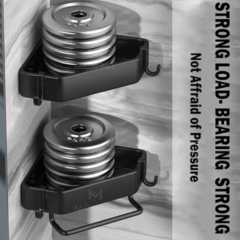 MONJAY Self-Adhesive Aluminium Bathroom Corner Shelf Rack Bathroom Corner Organizer Stand Bathroom Organisers Storage Racks Bathroom Shelf/Shelves Corner (King)(2 Shelf)