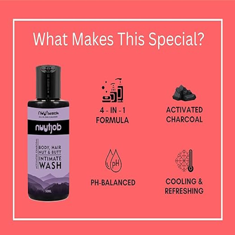 Nuutjob Intimate Hygiene Starter Pack for Men ? Intimate Deo Spray, Wash & Liquid Powder | No Itch, Odour-Free Freshness | For Daily Use | The Happy Sac | 50 ml | 3 in1 kit