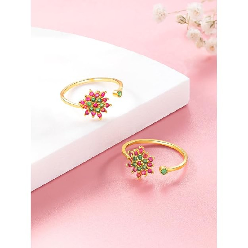 Peora Gold Plated Rani Pink Green Cubic Zirconia Studded Stylish Toe Ring Adjustable Bichiya Fashion Jewellery
