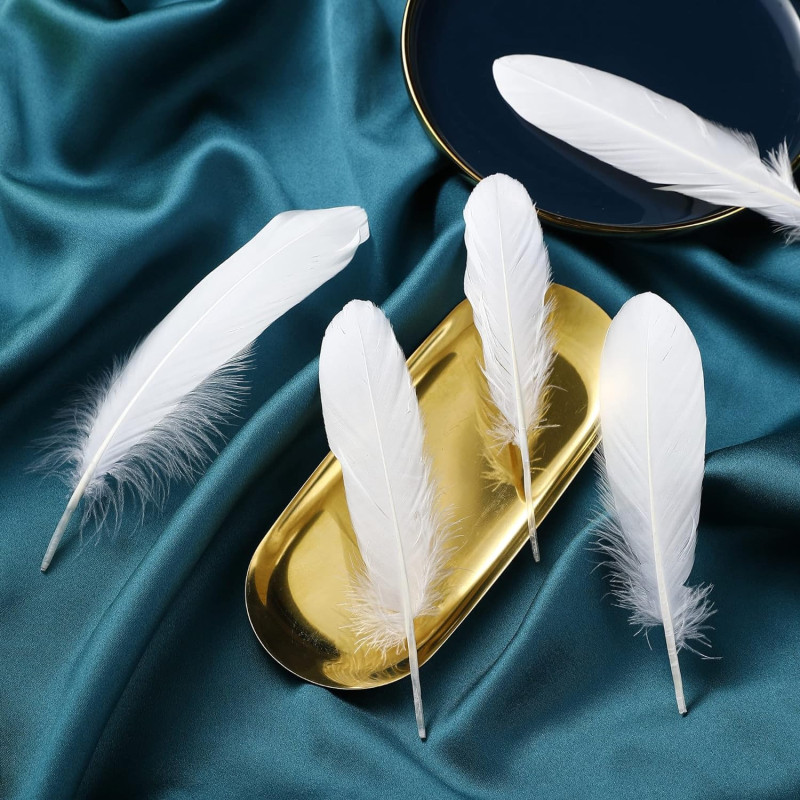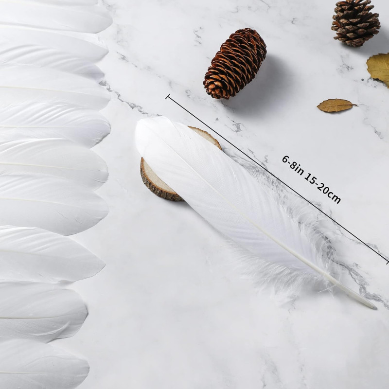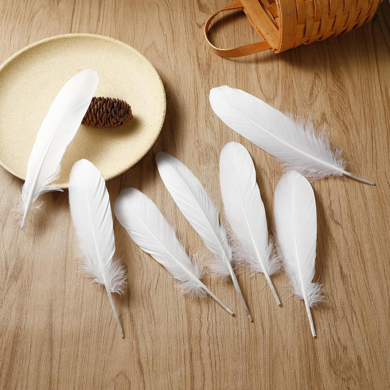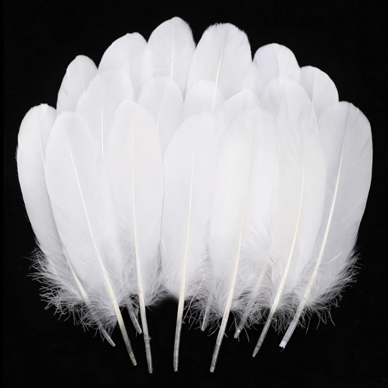 Prescent 40pc White Natural Goose Feathers for Carft, Decoration, and Much More (White, Pack of 40)