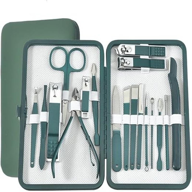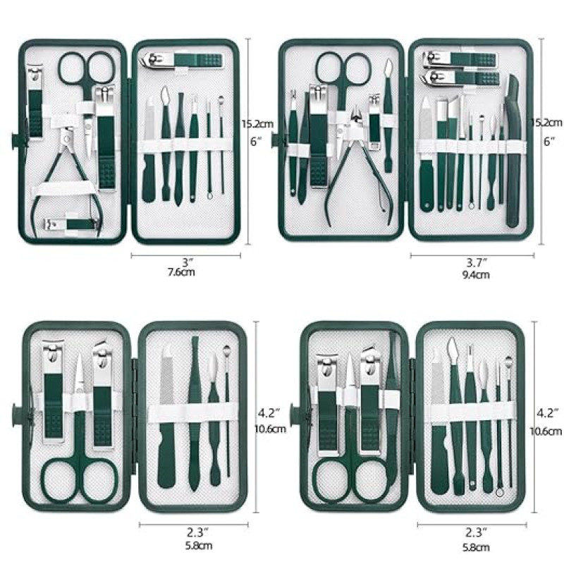 QXORE Manicure Pedicure Set 18-in-1 Nail Clippers Kit ? Professional Stainless Steel Grooming Tools with Nail Cutter, Cuticle Trimmer, Tweezers, Ear Pick, Pedicure Knife ? Travel Case for Men & Women