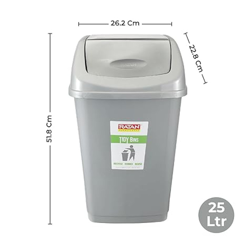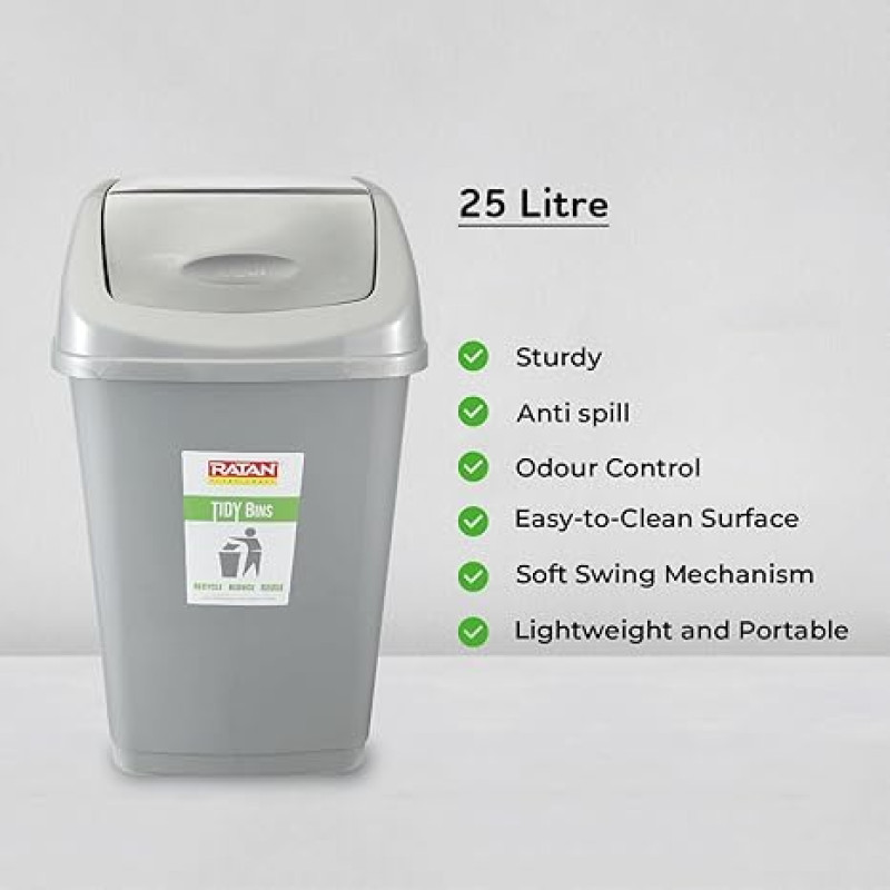 RATAN PLASTICWARE Tidy Bin with Swing Lid 25 Litres Plastic Dustbin, Trash Bin, Garbage Waste Bin For Home, Bathroom, Kitchen, Office, Bedroom Grey Color