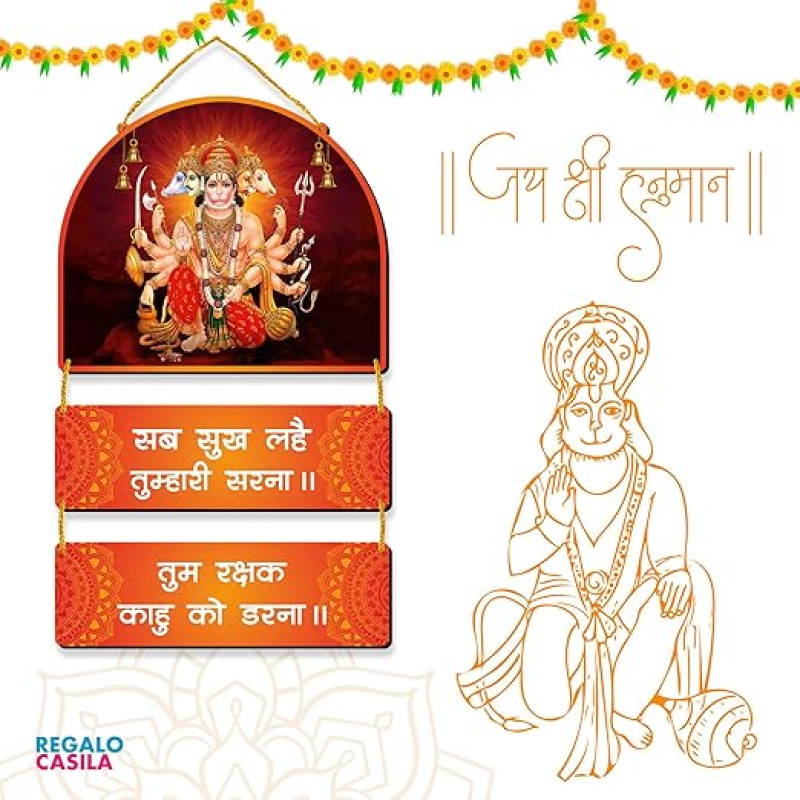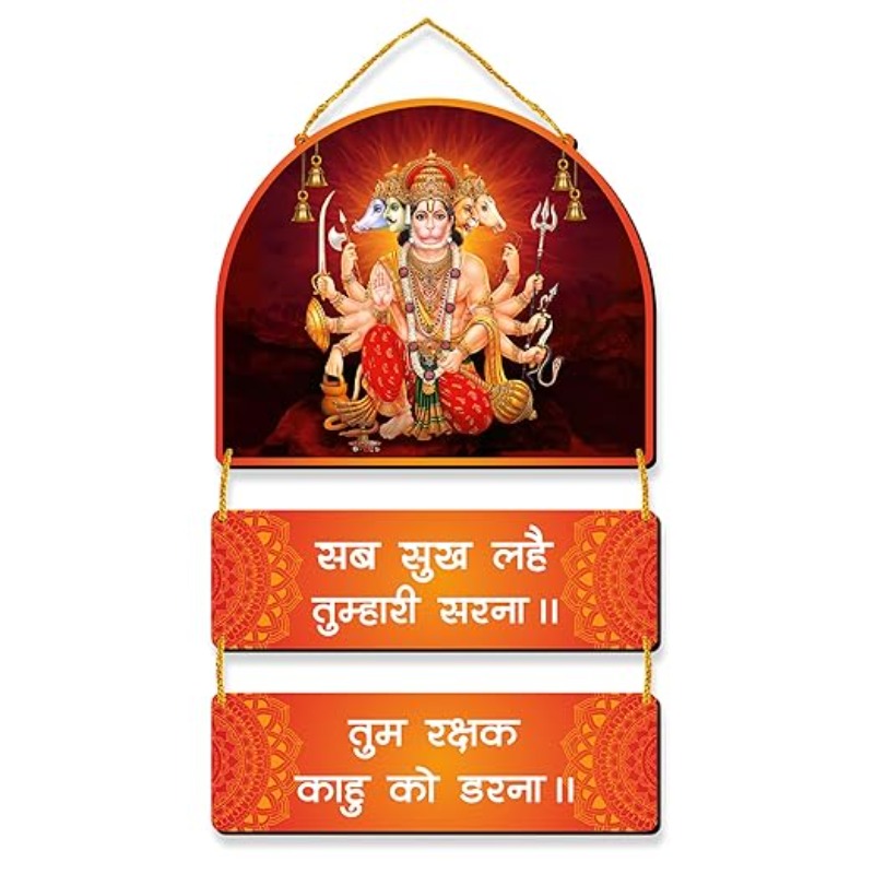 Regalocasila Positive Quotes Wall Hanging Hanuman Ji Mantra Printed Wooden 2 Titles Wall Art Decor for Home Decoration With Adjustable Rope Decorative Item for Pooja & Temple Room-Design- 4