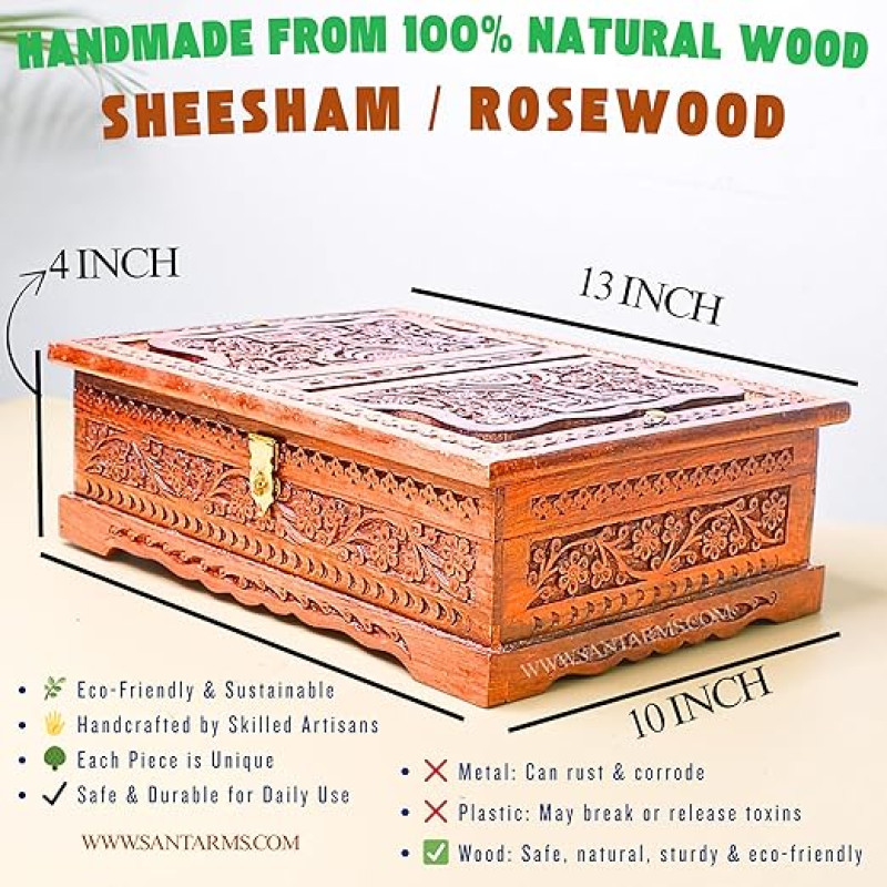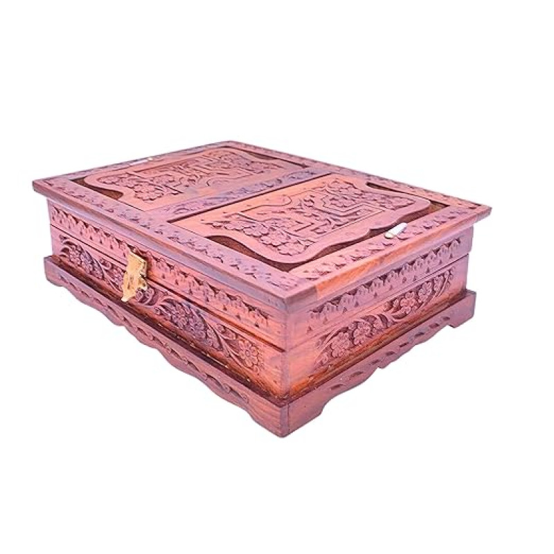 Santarms Wooden Holy Book Box with Foldable Rehal Stand ? Brown | Storage and Reading Holder for Quran Sharif, Geeta, Bible, Guru Granth Sahib and Other Sacred Texts