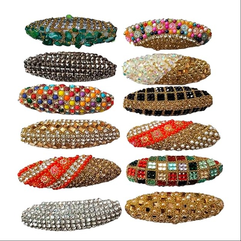 SENECIO 12Pc Designer Embellished Saree/Hijab Pin Set - Crystal Studded Brooch Safety Pin Hair Clip for Girls & Women - Party & Wedding Artwork, Multicolor