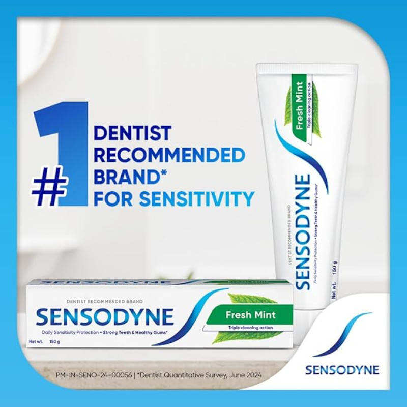 Sensodyne Toothpaste: Fresh Mint Sensitive Toothpaste For Daily Sensitivity Protection,Dentist Recommended Brand, Oral Care, 150 Gm