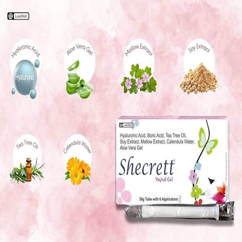 Shecrett Vaginal Gel | Veginal Infection Care Cream | Itching, Irritation, Dryness & Smell Relief | Intimate Hygiene Wash | Yeast Infection Cream | Hyaluronic Acid, Soy Extract, Mallow Extract | Boric acid Cream for Women | Calendula Water, Tea Tree Oil,