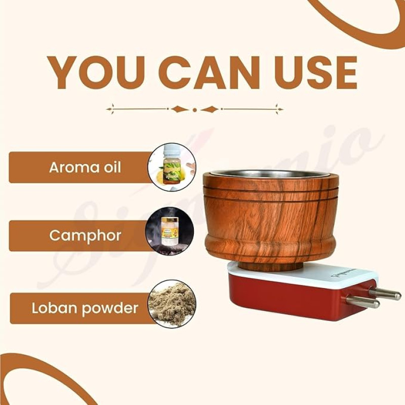 SIGNAMIO? Kapoor Kapur Dani Camphor Karpuram Bakhoor Oud Aroma Oil Diffuser Incense Dhoop Burner Electrical Stand Machine for Home Fragrance Room Freshener -DN-1, Sheesham Wood