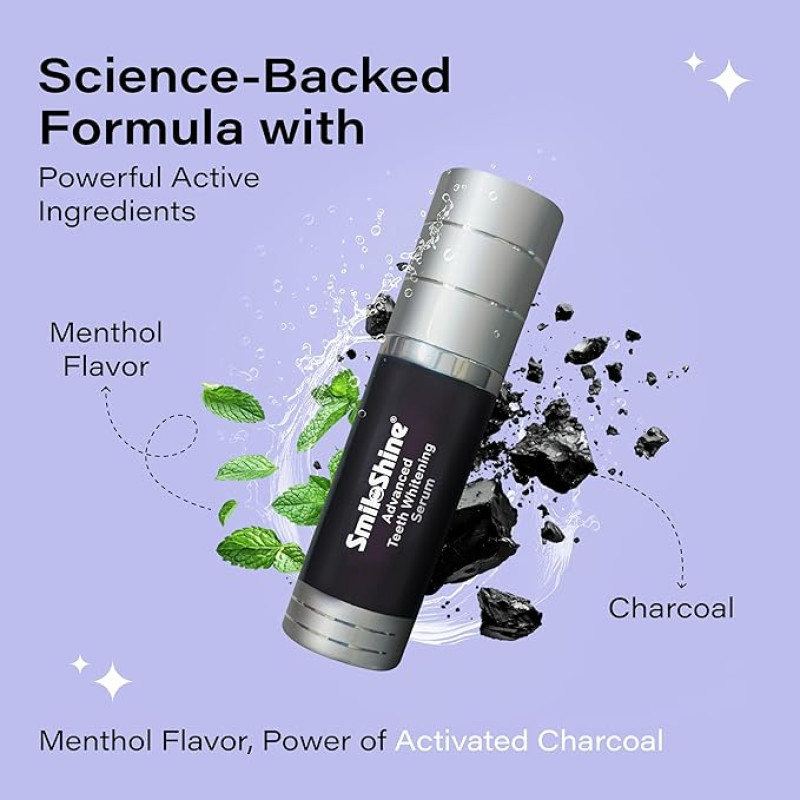 SmiloShine Power of Activated Charcoal Serum Toothpaste 30ml Advance Teeth Magic Whitening Serum v34 Colour Corrector for Teeth Instant Teeth Whitening in just 5 minutes Teeth Stain Remover Enamel Safe & Effective Teeth Whitener Oral care Menthol Flavor