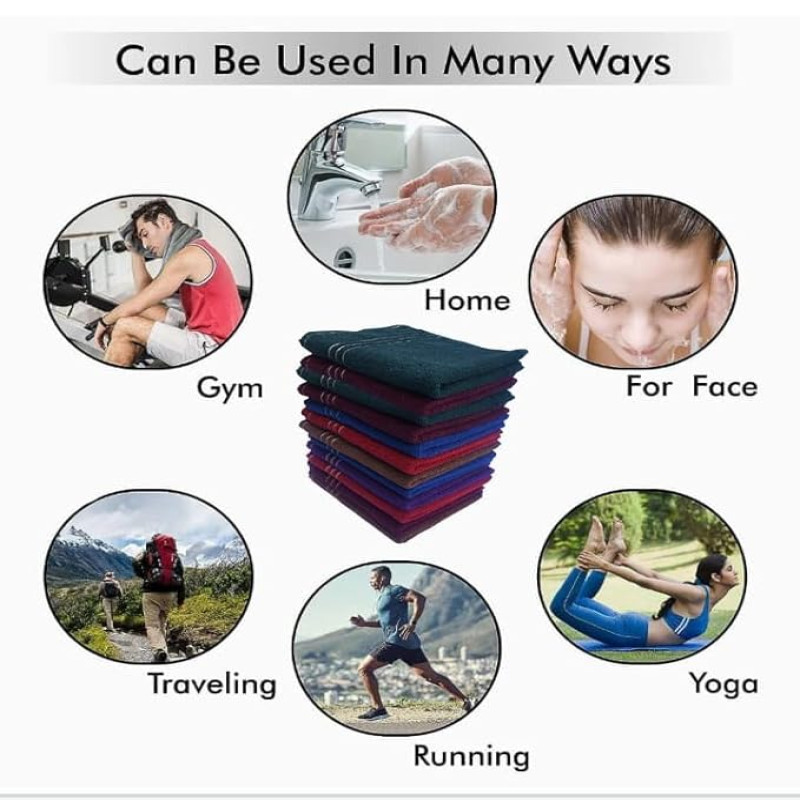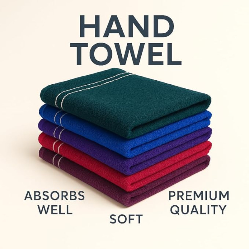 Space Fly Dark Color Cotton Hand Towels Set of 6 ? 11x17 Inches, Soft & Absorbent, Multi-Color Towels with White Triple Stripe Design for Bathroom, Gym, Kitchen, Spa, Hotel, Face & Hand Drying