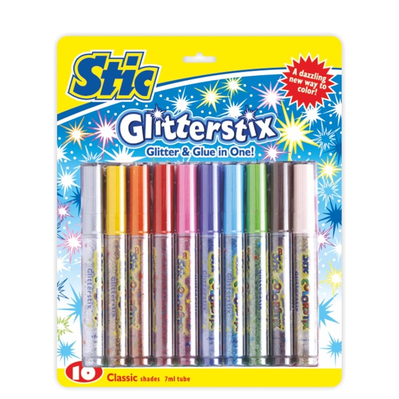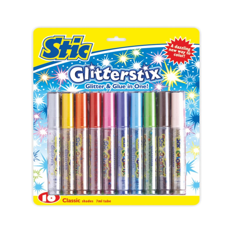Stic 10 Shades Glitter Glue Pens Craft Art Slime Resin Project Work Gum Sparkle Elmer stick Colour Kids Decoration Shimmer Decorate Birthday card Toy Clear Non toxic Tip Adhesive School Greeting cards