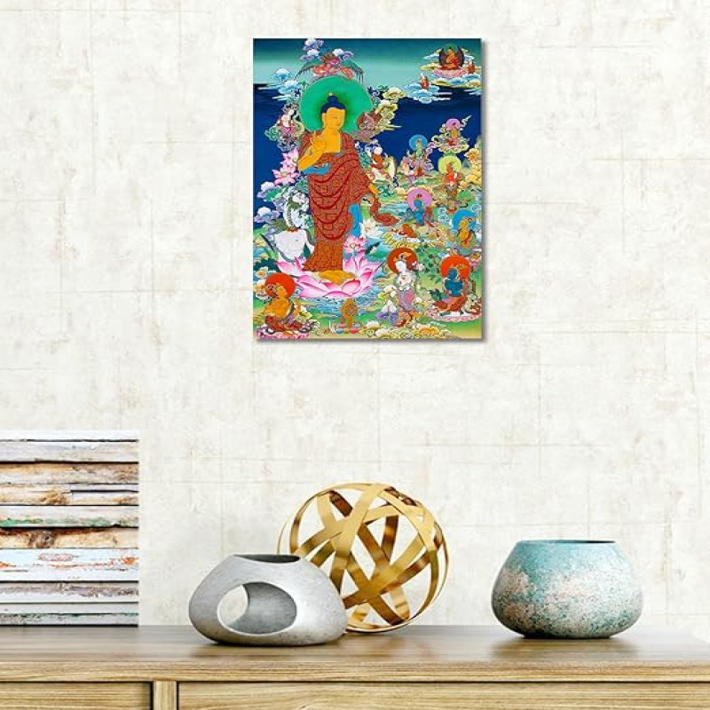 Tamatina Thangka Canvas Painting | Lord Buddha on Lotus | Buddhism Art| Traditional Art Painting for Home d?cor|Size - 13X9 Inches.h462