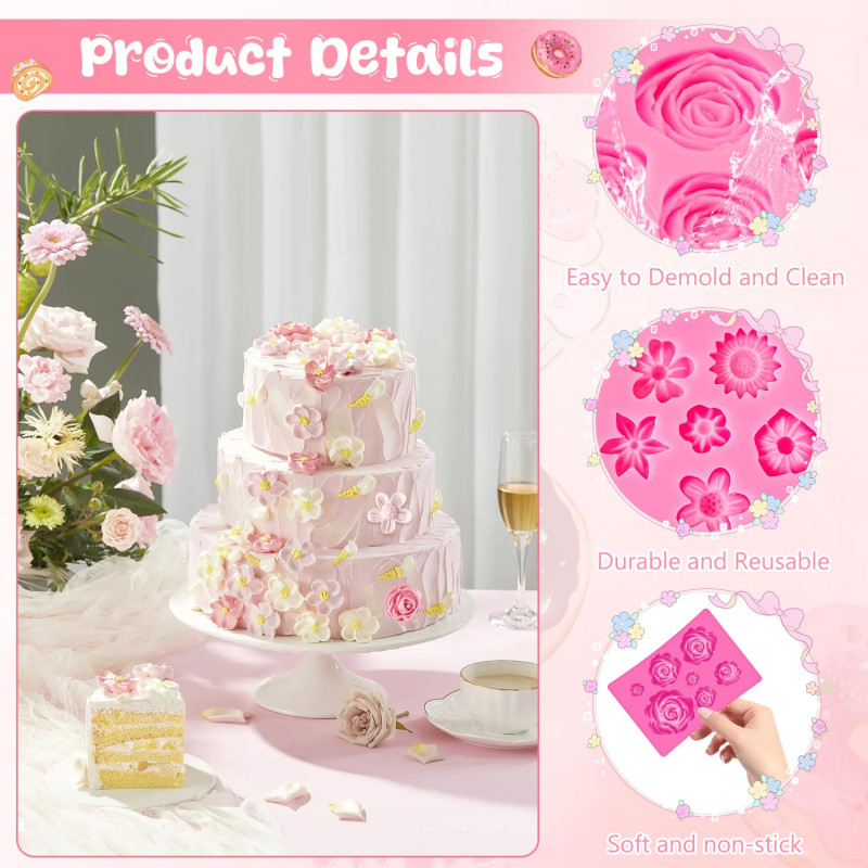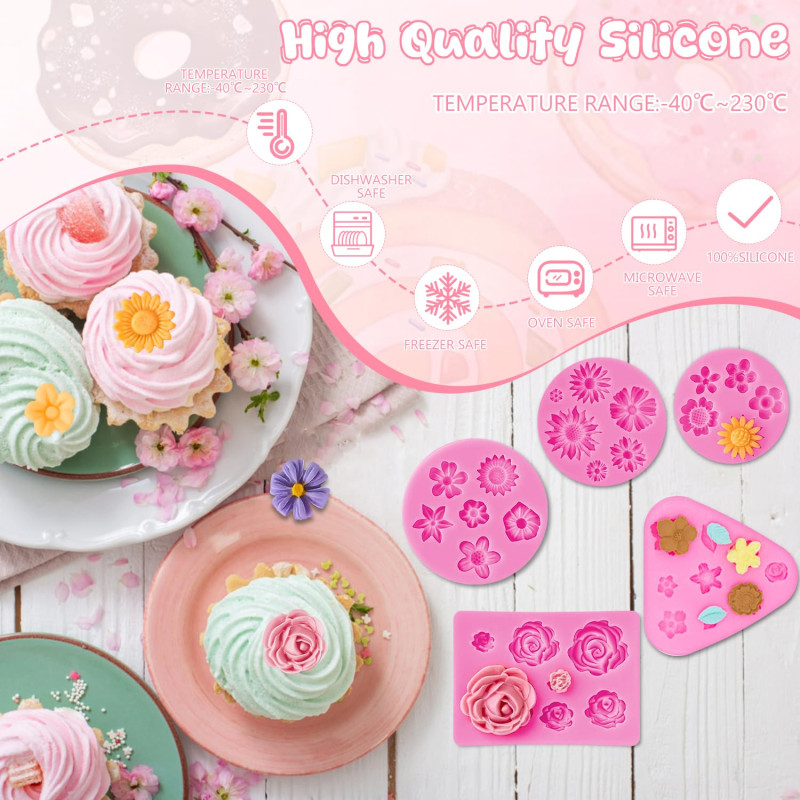 TecoKart? 5Pcs Flower Chocolate Moulds Set Silicone, DIY Fondant Tools for Cake Decorating, Soap Mold for Candle, Jelly, Pudding, and Chocolate Truffles Making