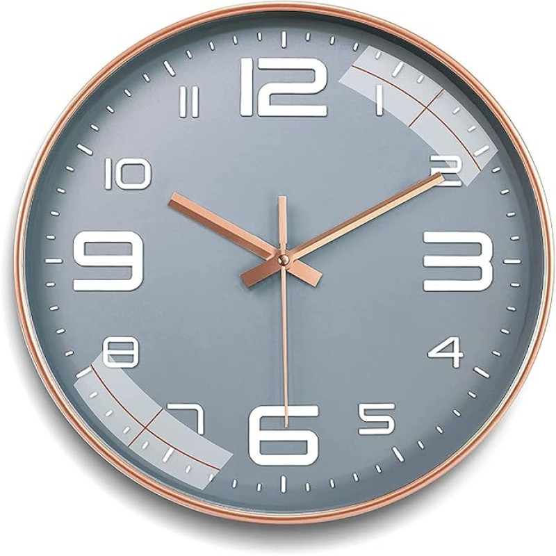 TEKCOOL Wall Clock 12" Silent Quartz Decorative Latest Wall Clock Non-Ticking Classic Clock Battery Operated Round Easy to Read for Room/Home/Kitchen/Bedroom/Office/School - Analog, Plastic Grey Gold