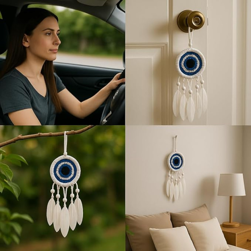 ThincAmaxe Handmade 3 Inch White and Blue Dream Catcher? Boho Wall Hanging Decor with Feathers & Pearls ? Spiritual Protection Ornament for Bedroom, Nursery, or Living Room