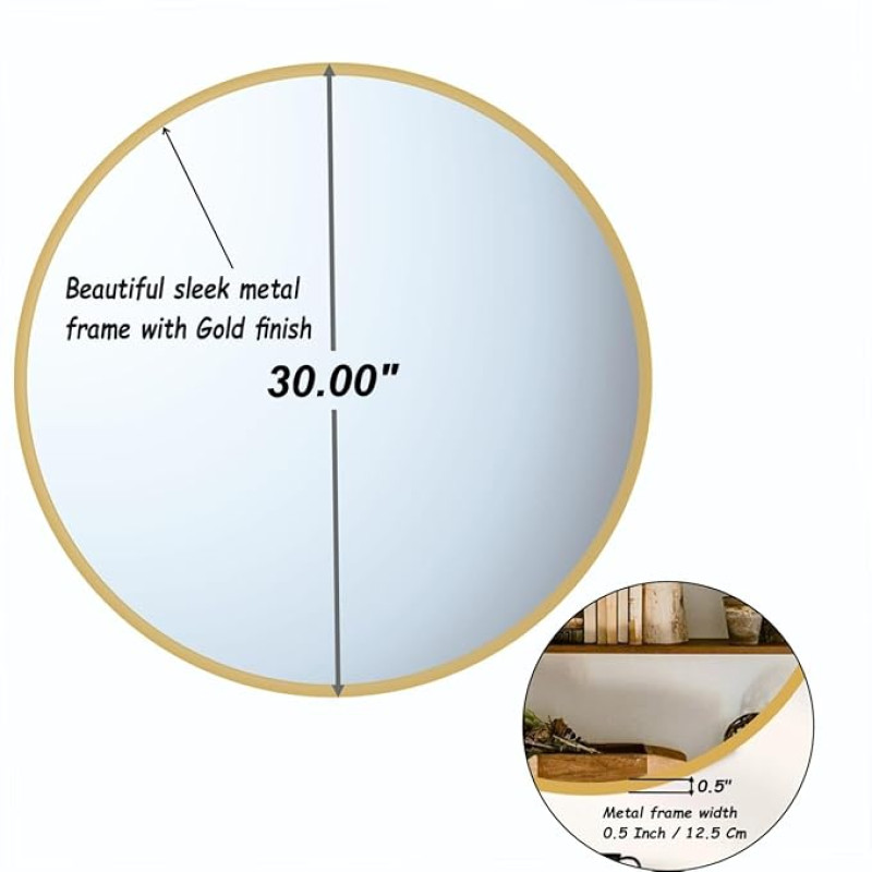 Vanity Mirror 30 Inch Stylish Modern Round Wall Mirror for Bathroom, Modern Gold Metal Frame Wall-Mounted Mirror, Home Decor Mirrors for Living Rooms,Entryways (Gold,30inches, Framed)